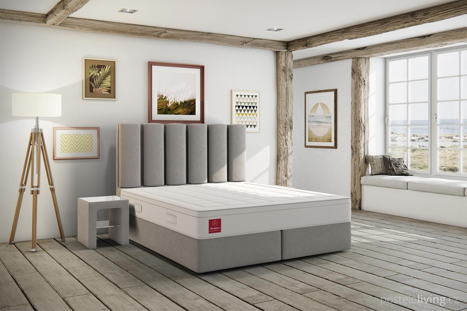 BOX A - Bonell (klasické pružiny). Výška boxu je 20 cm, celková výška je 34 cm vč. 14 cm vysokých designových nožiček.