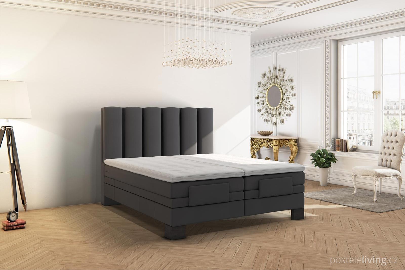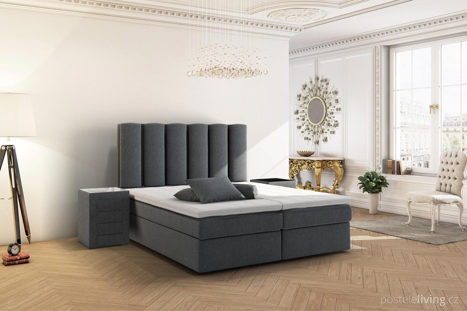 Pro postel LUZERN je charakteristické stylové designové čelo s vertikálními pruhy.