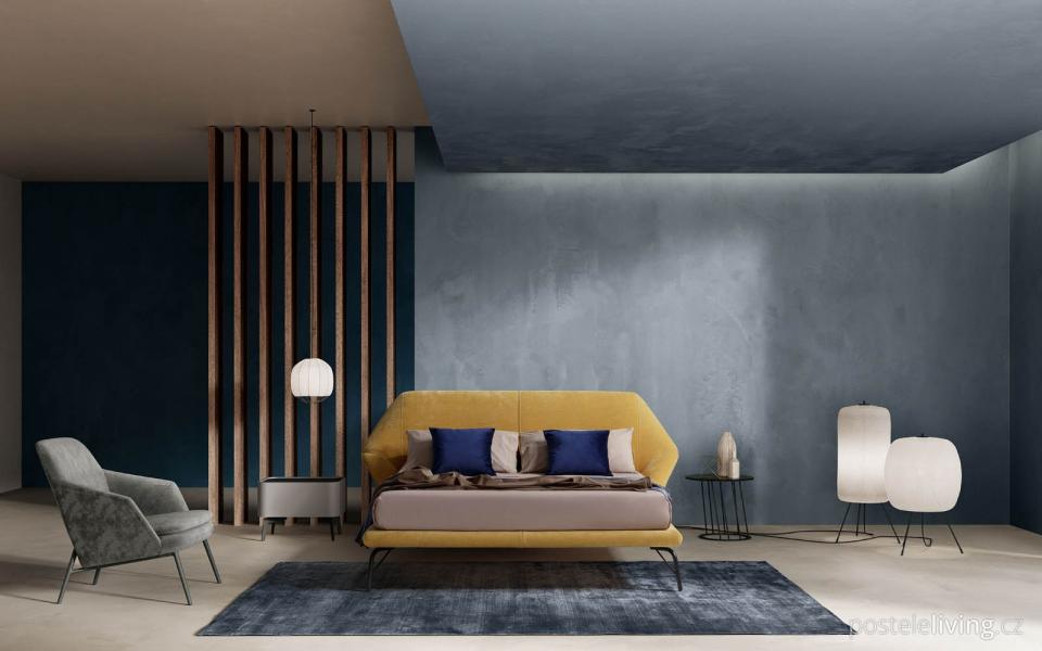 Model ORIGAMI vděčí za svůj název starodávnému japonskému umění tvorby malých výtvorů z listů velmi lehkého papíru. A stejně jako záhyby listu papíru, které následují a překrývají se, je zadní část postele Origami tvořena několika geometrickými profily vytvořenými jednou vrstvou čalounění.