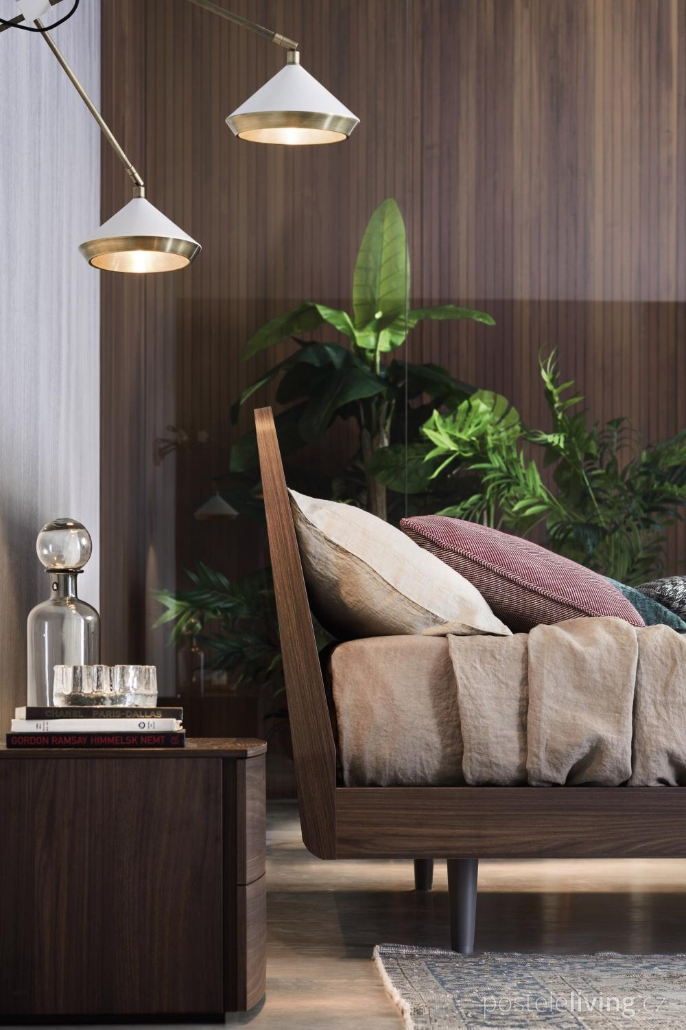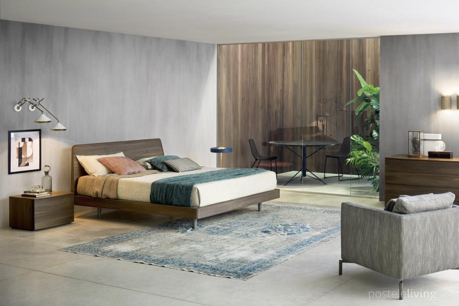 Masivní postel DEDALO s podnožím, nebo na zem, na přání s úložným prostorem.