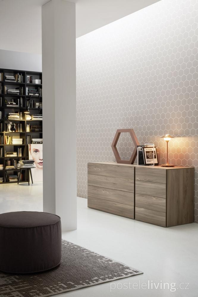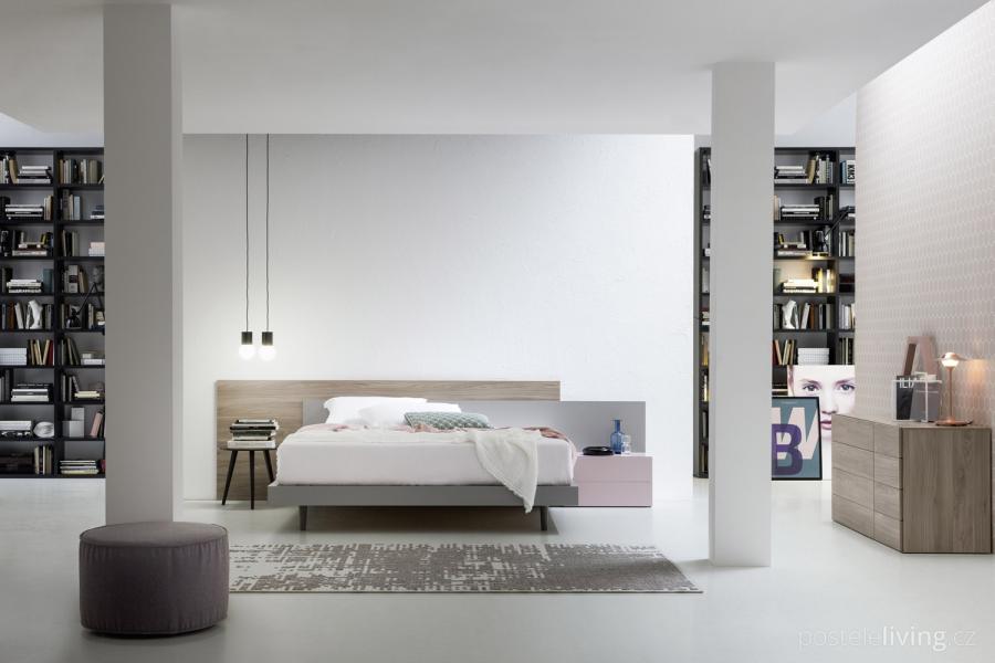 Řešení čela TIME pannelli" v dekorech dřeva, v laku a s čalouněním.